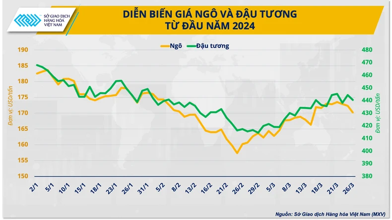 Trong đó, giá ngô suy giảm hơn 1% trong phiên giao dịch đầu tuần, trong khi lúa mì chịu áp lực bán mạnh với mức giảm gần 2%. Diễn biến tiêu cực này đến từ triển vọng nguồn cung dồi dào tại Mỹ cùng với hoạt động xuất khẩu chững lại.Cụ thể, theo...
